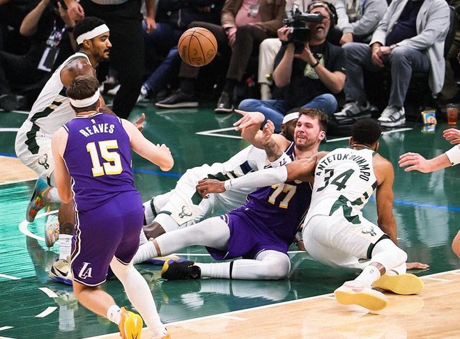 因为斯马特能分担东契奇和里夫斯防守压力。而本赛季詹姆斯和东契奇+里夫斯在场打了37分36秒,湖人百回合输对手30.9分!詹姆斯复出后湖人的首发五人组,百回合输对手15.8分。至于詹姆斯单独和里夫斯或者东契奇搭档,不用想,平均也输对手16分。典型的“两个和尚抬水吃,三个和尚没水吃。”本赛季东契奇+里夫斯场均超过60分的输出,其实湖人已经不太需要更多进攻终结点;关键是东契奇和里夫斯两人场均能送出16次助攻,詹姆斯分担了组织策应压力,承担了一部分输出,但让湖人整体防守下滑严重。