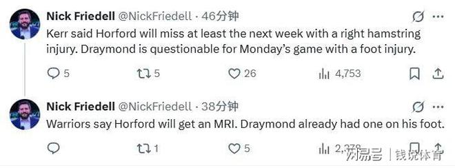 作为球队内线重要轮换,霍福德的伤病给勇士防线带来不小冲击。霍福德本赛季已为球队出战12场,场均贡献5.8分4.3篮板1.8助攻,同时以1抢断1盖帽的全能表现成为防守端的关键拼图。此次腿筋受伤将让他错过接下来对阵爵士、火箭和鹈鹕的三连战,科尔表示霍福德已安排核磁共振检查,具体归期需视检查结果而定。