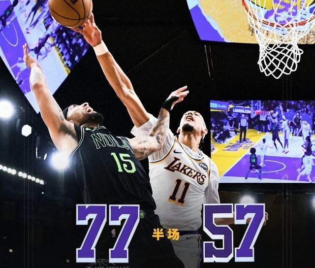 次节比赛,里夫斯连续命中2记三分,将分差进一步拉开,阿尔瓦拉多跳投止血,鹈鹕的进攻断断续续,文森特三分命中,湖人依然保持着20分以上的领先优势。亚历山大追身三分命中,拉拉维亚三分回应,贝三分也进,里夫斯突破打成2+1,湖人重新拉开分差。之后两队你来我往,分差一直在20分以上,海斯二次进攻打进,皮维连续命中2记三分,鹈鹕将分差迫近至20分以内,里夫斯突破打进,半场湖人77-57领先。
