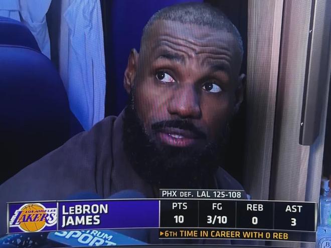 最终全场打完,湖人108-125不敌太阳。